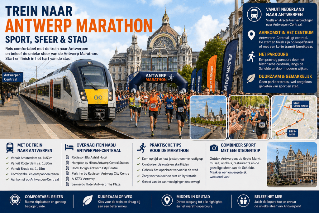 Met de trein naar Antwerpen reizen is een efficiënte en ontspannen manier om deel te nemen aan of te genieten van de Antwerp Marathon.